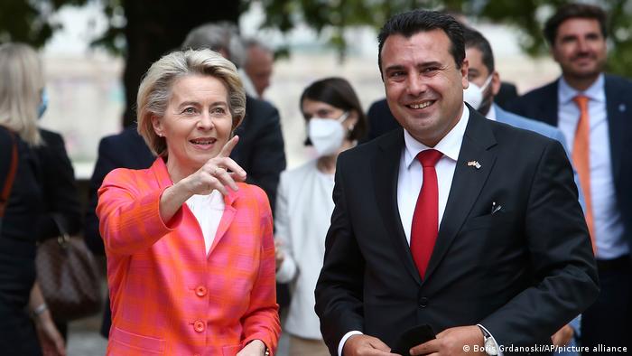 Presidentja e Komisionit të BE-së, Ursula von der Leyen, sërish vuri në dukje qendrimin e formuluar qartazi nga Komisioni për Maqedoninë e Veriut dhe Shqipërinë: “Ju i keni përmbushur kushtet dhe e keni bërë punën tuaj”, tha ajo si në Shkup edhe në Tiranë. Zoran Zaev, kryeministri i Maqedonisë së Veriut, theksoi atë që e përsërisin prej vitesh shumë politikanë të BE-së, se kemi të bëjmë me besueshmërinë e Unionit Europian. BE më në fund duhet t’u përmbahet premtimeve. Ursula von der Leyen i kaloi me buzëqeshje kritikat gjatë një konference të përbashkët shtypi në një qendër rinore të rinovuar me financimin e BE-së. Një recetë konkrete, se si mund të ndryshojë qendrim Bullgaria, ajo nuk mundi të ofrojë. Në të gjitha stacionet e turit të saj ajo preferoi të theksojë ndihmat financiare, që BE-ja ka vënë në dispozicion për Ballkanin për ripërtëritjen pas pandemisë së koronavirusit. Krahas ndihmave afatshkurtra për fushatat e vaksinimit në vitet e ardhshme do të lëvrohen gati 30 miliardë Euro për investime strategjike në rajon.