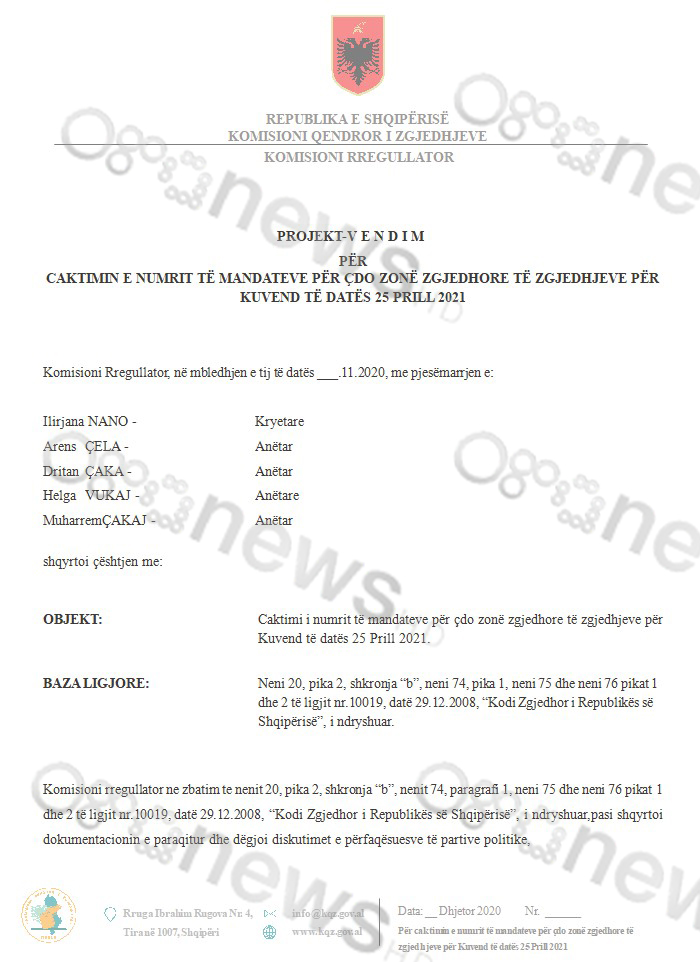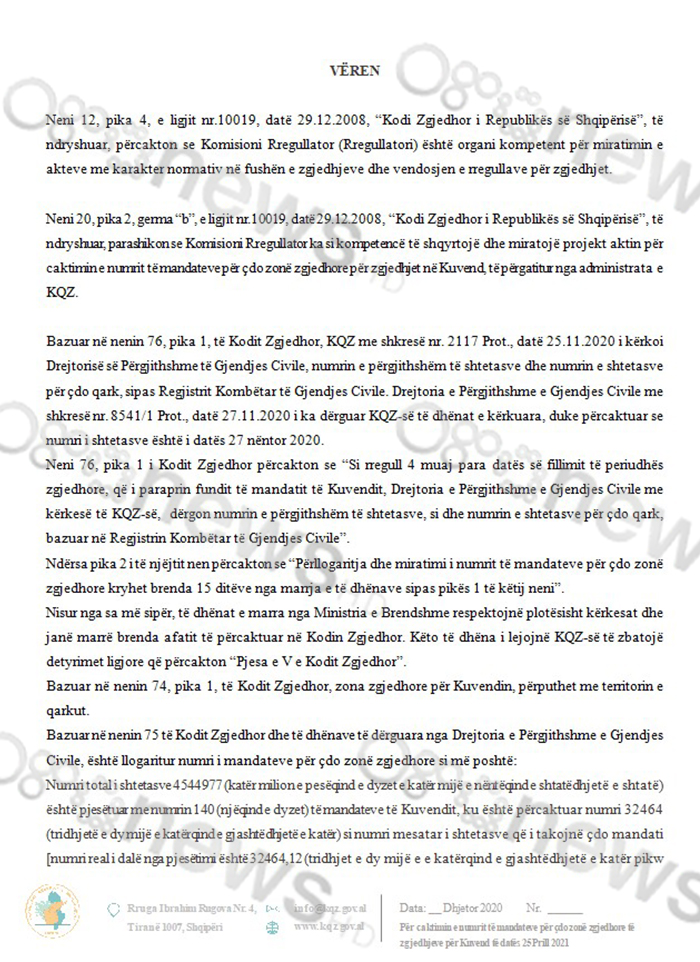 Ky vendim hyn në fuqi menjëherë dhe publikohet në faqen zyrtare të KQZ.
