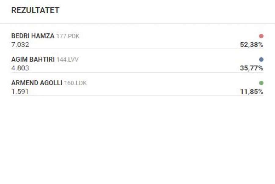 Bedri Hamza i PDK-së është pranë fitores së madhe në Mitrovicë të Jugut, bazuar në gati gjysmën e votave të numëruara. Nga 44.09 për qind të votave të numëruara, Hamza është i pari me mbi 52 për qind të votave duke lënë prapa kryetarin aktual Agim Bahtirin e VV-së që ka 35.77 për qind të votave.